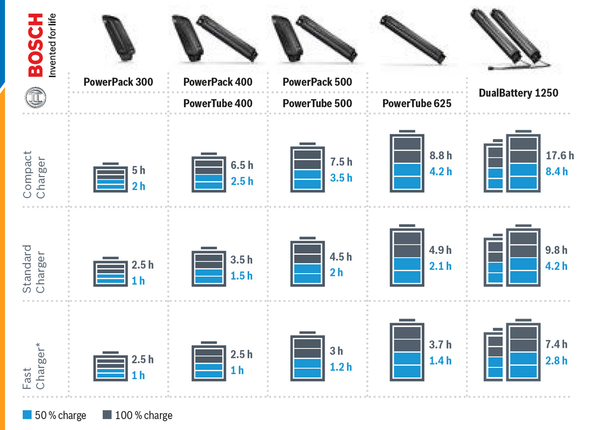 The charging time of an e-bike battery depends on the battery size and the type of charger used.